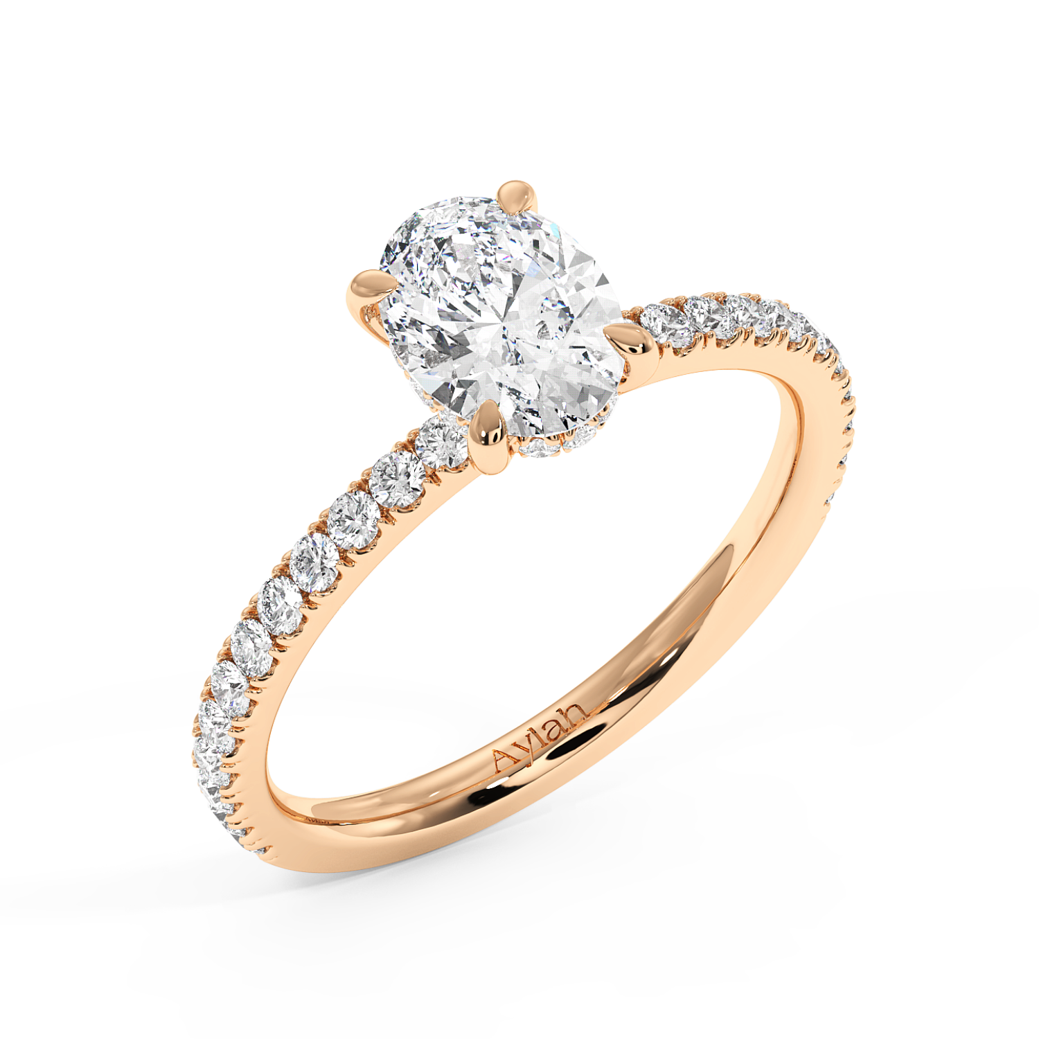 A hidden halo engagement ring offers a modern twist on a classic design, featuring a delicate circle of diamonds or gemstones tucked beneath the center stone. This subtle detail creates a captivating sparkle that is revealed when viewed from the side, adding intrigue and brilliance without overwhelming the centerpiece. The hidden halo enhances the appearance of the main stone, making it look larger and more radiant. Crafted in precious metals like platinum, white gold, or yellow gold, this style blends elegance with sophistication. A hidden halo engagement ring is perfect for those who love timeless beauty with a unique, romantic touch.